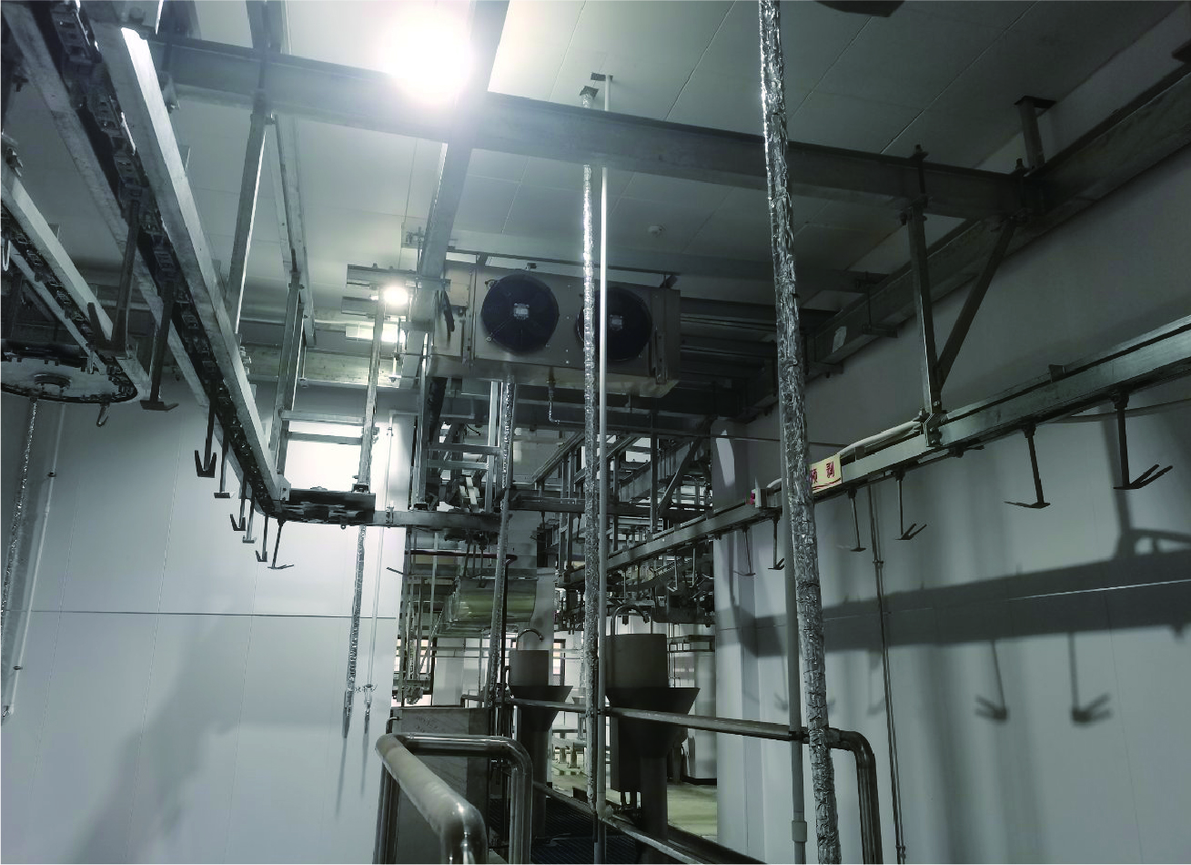 ?????羊生產(chǎn)線(xiàn)排酸4間(最大排酸量2000只/天)、速凍2間(最大速凍量800只/天)、分割車(chē)間(510m2,10~15℃)。